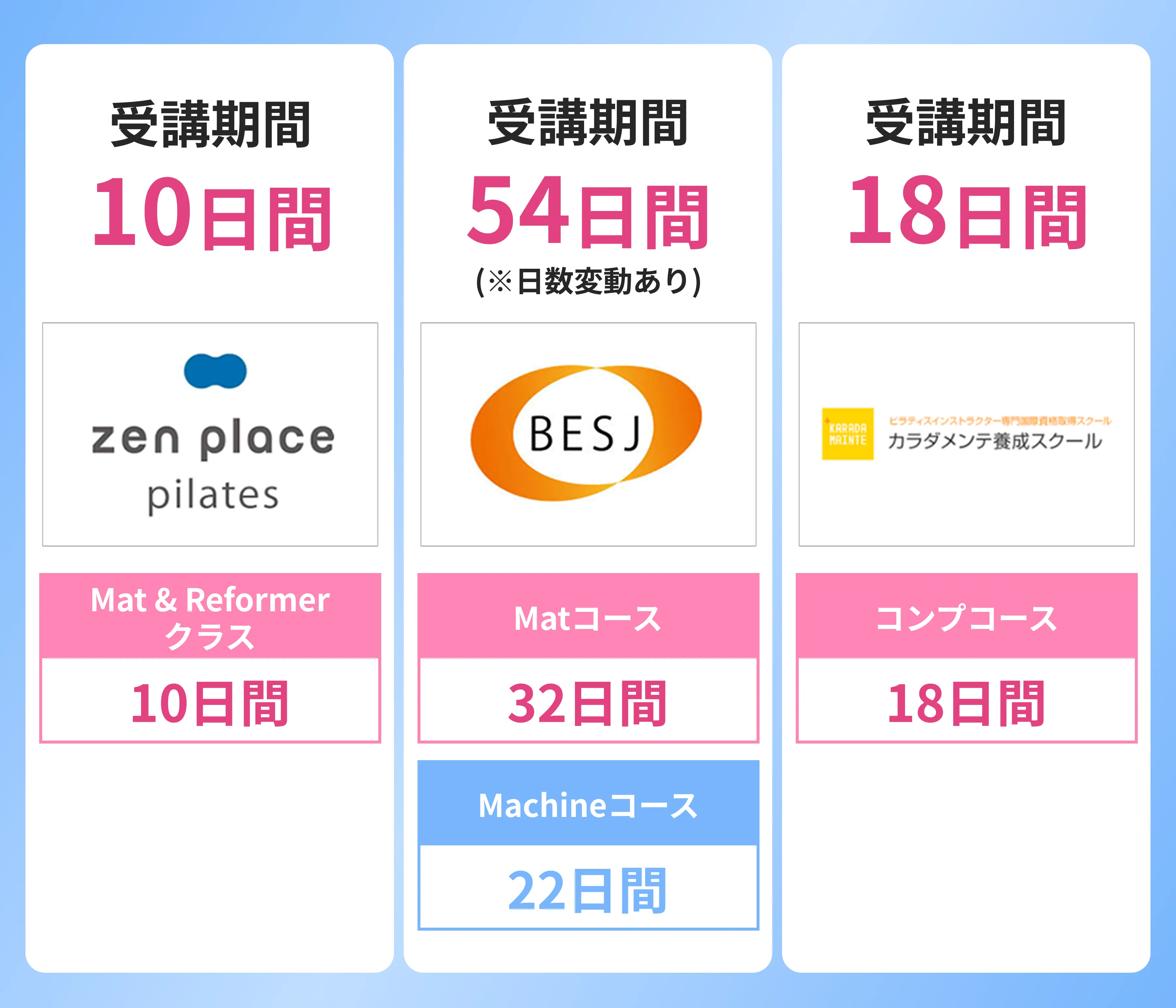 1ヶ月以上通うスクールもある中、zen placeの資格コースは最短10日間のコースもあります!