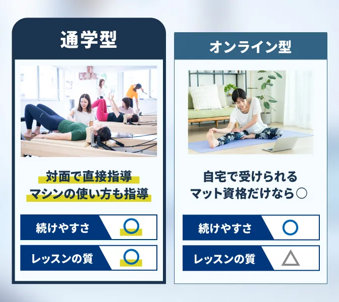 と、自分のペースでしっかり学べます。特にリフォーマーなど自宅に置きにくい器具は、スクールでどれだけ使えるかの確認が必須です。